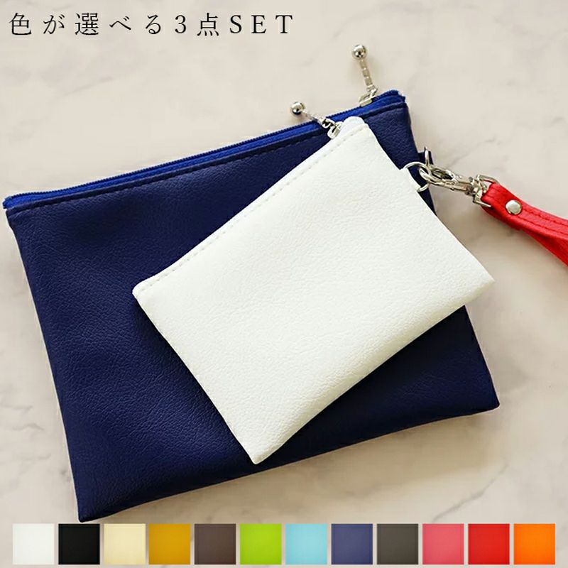 大小のポーチ好きな色を組み合わせて自分だけのポーチセットを創ろう「POBLE」キーリング付き