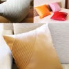 一番最初に目に留まるのがこのプリーツ(※アコーディオンの蛇腹のように細かく、立体的に折り畳んだひだの総称)です。 通常プリーツとは、スカートなどに使われている通り、織目(しわ)をつけてデザインされていますが、 要は「しわ」なので、長年使用していくとそのしわが徐々に伸ばされていってしまう欠点がありました。 そこでTEESではプリーツを縫製して伸びないように加工しました。 これにより長期間の使用にも問題なく、新品同様の形を保たせることが可能になりました。 しかしこれをただ直線的にやってしまうと、デザイン的に柔らかさや高級感が損なわれてしまうので、曲線になったのです。 しかも2枚の生地を縫い合わせるのではなく、1枚の生地を2つ折りに縫い合わせることにより、曲線が綺麗に繋がる。それが、今までのクッションカバーにはなかった「High style」の証なのです。
