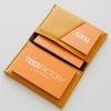 名刺を取り出したら離せば閉まるマグネット入り。 渡すことだけに集中できます。 そして中にしっかりした台紙が入っていますので、下敷き代わりにお相手の特徴を書き込めます。 一度にたくさんの方との名刺交換をした後に名刺を見ても、どんな方だったか思い出せない時が残念ながらあるんです。 そんな時に、頂いた名刺の裏にサッと一言。その場で書けちゃいます。 メモを取る姿もかっこよく美しい。 カッチリしているけど見た目は親近感のある柔らかさ。 第一印象を爽やかに決めてくださいね。