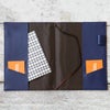 80ページのノートが2冊入る大容量 ノートカバー「kanon B5サイズ」カード入れやペンホルダーも付き。芯地入りでマルチに使える日本製